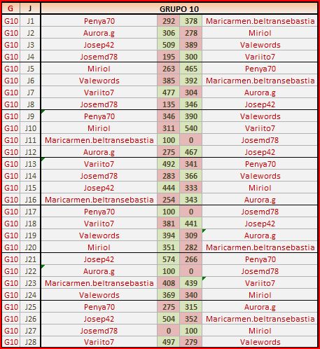 Deja un comentarioEn está página se irán publicando los resultados de las diferentes partidas, siendo ambos jugadores los responsables de subirlos, o comprobando que ya hayan sido subidos, insertando un COMENTARIO en la parte inferior de la pantalla (opción «Deja tu comentario«), indicando el nombre de los dos jugadores y los puntos obtenidos en la partida.