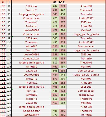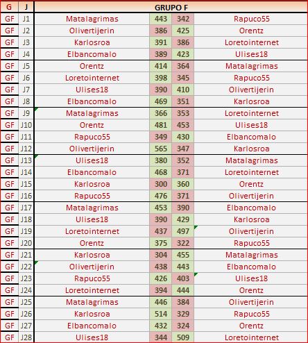 Deja un comentarioEn está página se irán publicando los resultados de las diferentes partidas, siendo ambos jugadores los responsables de subirlos, o comprobando que ya hayan sido subidos, insertando un COMENTARIO en la parte inferior de la pantalla (opción «Deja tu comentario«), indicando el nombre de los dos jugadores y los puntos obtenidos en la partida.