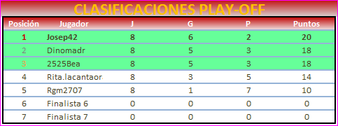 Primero de todo dar la enhorabuena a todos por llegar al play off.