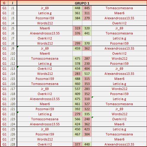 Deja un comentarioEn está página se irán publicando los resultados de las diferentes partidas, siendo ambos jugadores los responsables de subirlos, o comprobando que ya hayan sido subidos, insertando un COMENTARIO en la parte inferior de la pantalla (opción «Deja tu comentario«), indicando el nombre de los dos jugadores y los puntos obtenidos en la partida.