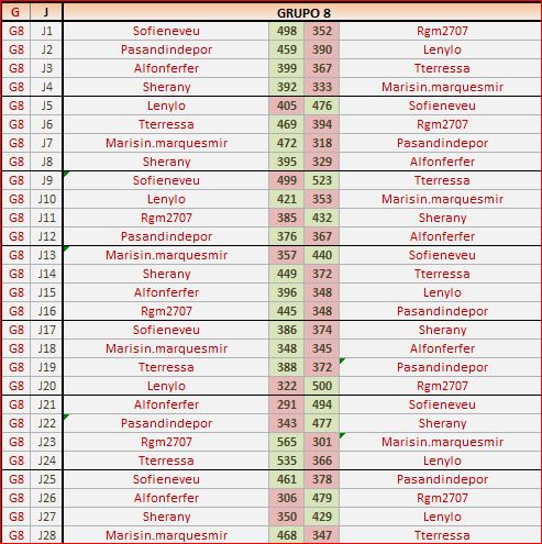 Deja un comentarioEn está página se irán publicando los resultados de las diferentes partidas, siendo ambos jugadores los responsables de subirlos, o comprobando que ya hayan sido subidos, insertando un COMENTARIO en la parte inferior de la pantalla (opción «Deja tu comentario«), indicando el nombre de los dos jugadores y los puntos obtenidos en la partida.