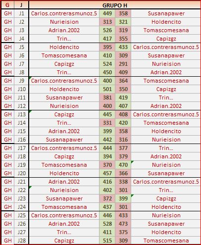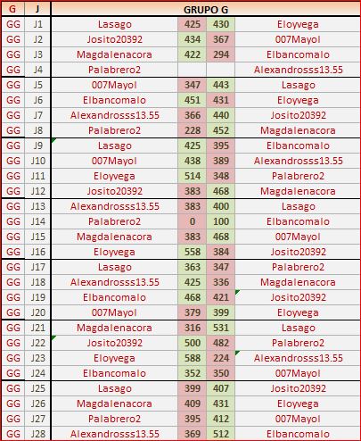 Deja un comentarioEn está página se irán publicando los resultados de las diferentes partidas, siendo ambos jugadores los responsables de subirlos, o comprobando que ya hayan sido subidos, insertando un COMENTARIO en la parte inferior de la pantalla (opción «Deja tu comentario«), indicando el nombre de los dos jugadores y los puntos obtenidos en la partida.