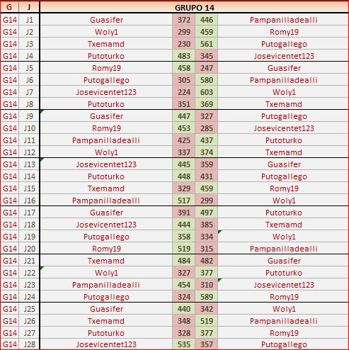 Deja un comentarioEn está página se irán publicando los resultados de las diferentes partidas, siendo ambos jugadores los responsables de subirlos, o comprobando que ya hayan sido subidos, insertando un COMENTARIO en la parte inferior de la pantalla (opción «Deja tu comentario«), indicando el nombre de los dos jugadores y los puntos obtenidos en la partida.