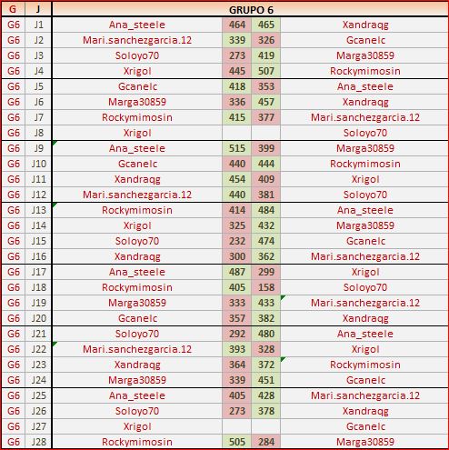 Deja un comentarioEn está página se irán publicando los resultados de las diferentes partidas, siendo ambos jugadores los responsables de subirlos, o comprobando que ya hayan sido subidos, insertando un COMENTARIO en la parte inferior de la pantalla (opción «Deja tu comentario«), indicando el nombre de los dos jugadores y los puntos obtenidos en la partida.