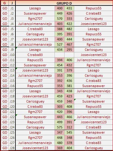 Deja un comentarioEn está página se irán publicando los resultados de las diferentes partidas, siendo ambos jugadores los responsables de subirlos, o comprobando que ya hayan sido subidos, insertando un COMENTARIO en la parte inferior de la pantalla (opción «Deja tu comentario«), indicando el nombre de los dos jugadores y los puntos obtenidos en la partida.