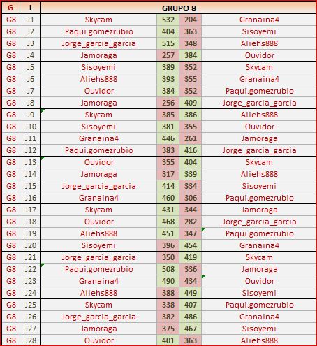 Deja un comentarioEn está página se irán publicando los resultados de las diferentes partidas, siendo ambos jugadores los responsables de subirlos, o comprobando que ya hayan sido subidos, insertando un COMENTARIO en la parte inferior de la pantalla (opción «Deja tu comentario«), indicando el nombre de los dos jugadores y los puntos obtenidos en la partida.