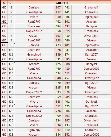 Deja un comentarioEn está página se irán publicando los resultados de las diferentes partidas, siendo ambos jugadores los responsables de subirlos, o comprobando que ya hayan sido subidos, insertando un COMENTARIO en la parte inferior de la pantalla (opción «Deja tu comentario«), indicando el nombre de los dos jugadores y los puntos obtenidos en la partida.