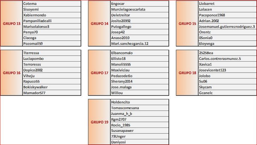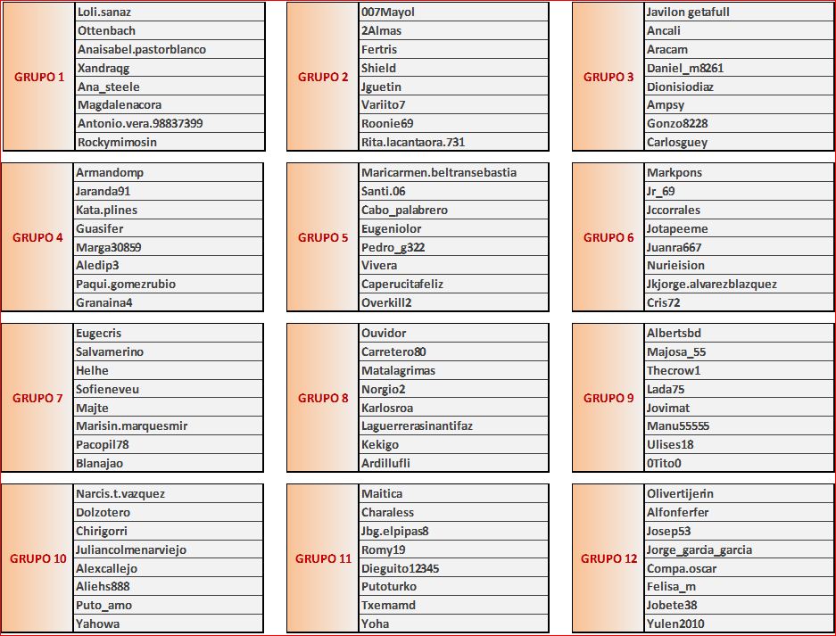 ¡¡¡ Hazlo en la sub-página habilitada para el grupo en el que estés encuadrado !!! Desde 01/01/2014, las reglas de todos los torneos figuran en una pestaña general, no olvides leerlas.