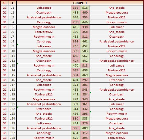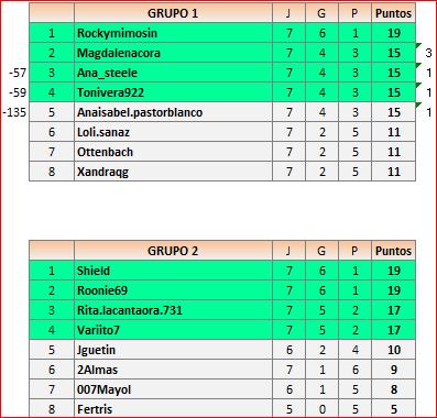 Lista de los jugadores de cada grupo ordenados por la media de puntos del ranking.