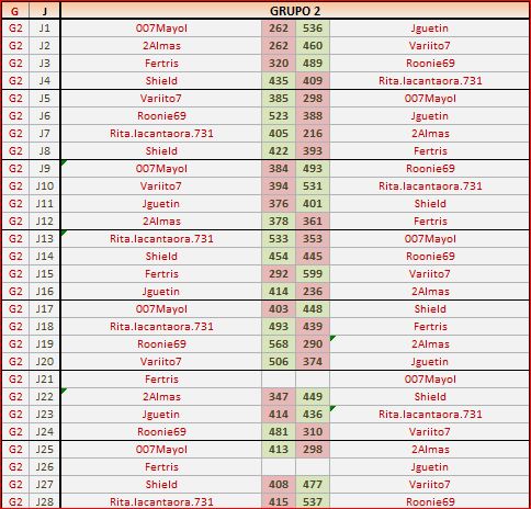 Deja un comentarioEn está página se irán publicando los resultados de las diferentes partidas, siendo ambos jugadores los responsables de subirlos, o comprobando que ya hayan sido subidos, insertando un COMENTARIO en la parte inferior de la pantalla (opción «Deja tu comentario«), indicando el nombre de los dos jugadores y los puntos obtenidos en la partida.