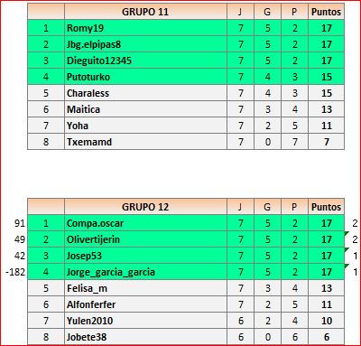 Lista de los jugadores de cada grupo ordenados por la media de puntos del ranking.
