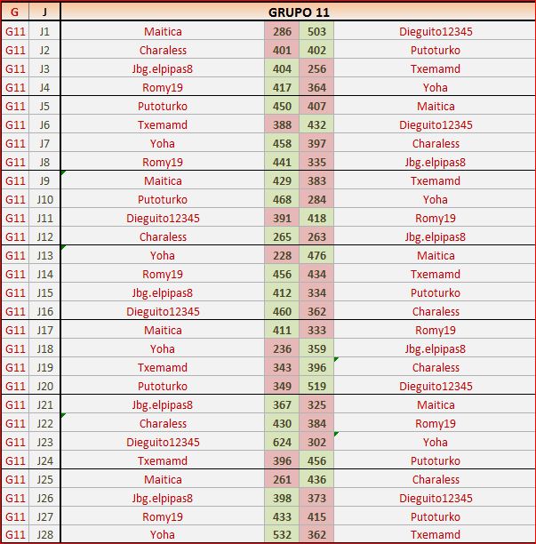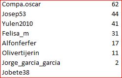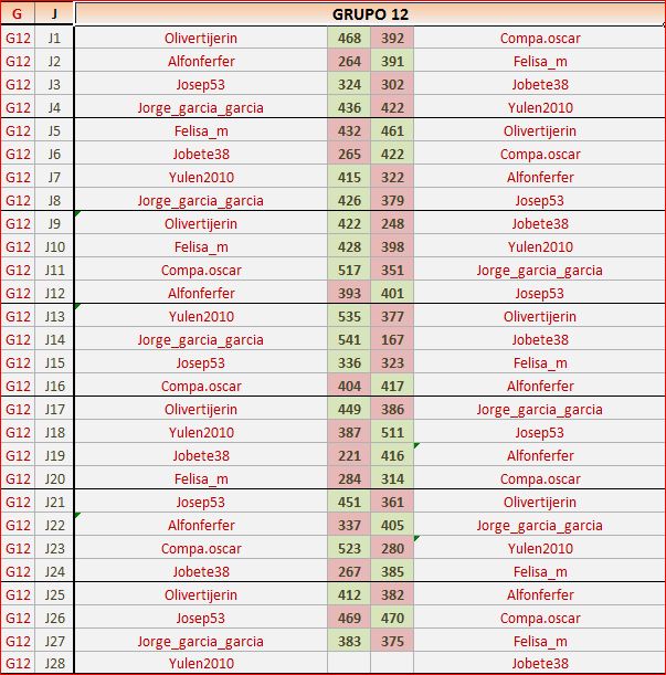 Deja un comentarioEn está página se irán publicando los resultados de las diferentes partidas, siendo ambos jugadores los responsables de subirlos, o comprobando que ya hayan sido subidos, insertando un COMENTARIO en la parte inferior de la pantalla (opción «Deja tu comentario«), indicando el nombre de los dos jugadores y los puntos obtenidos en la partida.