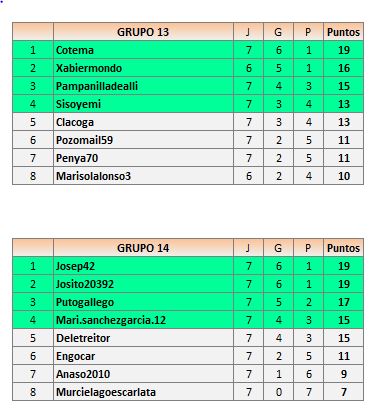Lista de los jugadores de cada grupo ordenados por la media de puntos del ranking.