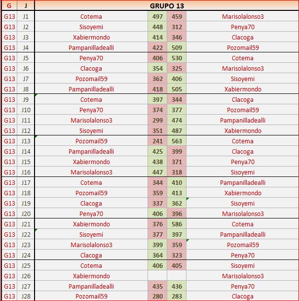 Deja un comentarioEn está página se irán publicando los resultados de las diferentes partidas, siendo ambos jugadores los responsables de subirlos, o comprobando que ya hayan sido subidos, insertando un COMENTARIO en la parte inferior de la pantalla (opción «Deja tu comentario«), indicando el nombre de los dos jugadores y los puntos obtenidos en la partida.