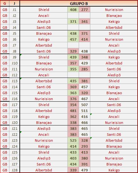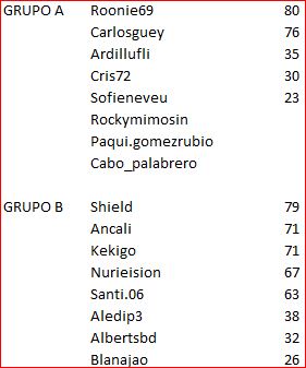 Lista de los jugadores de cada grupo ordenados por la media de puntos del ranking.