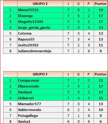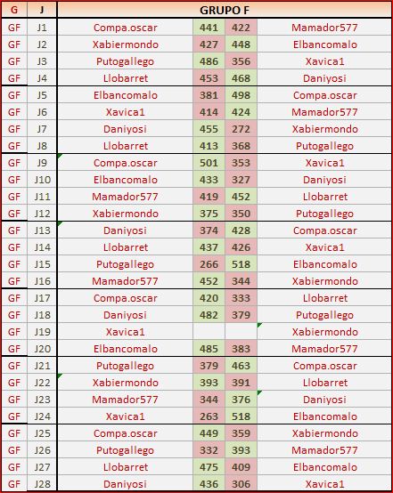 Lista de los jugadores de cada grupo ordenados por la media de puntos del ranking-