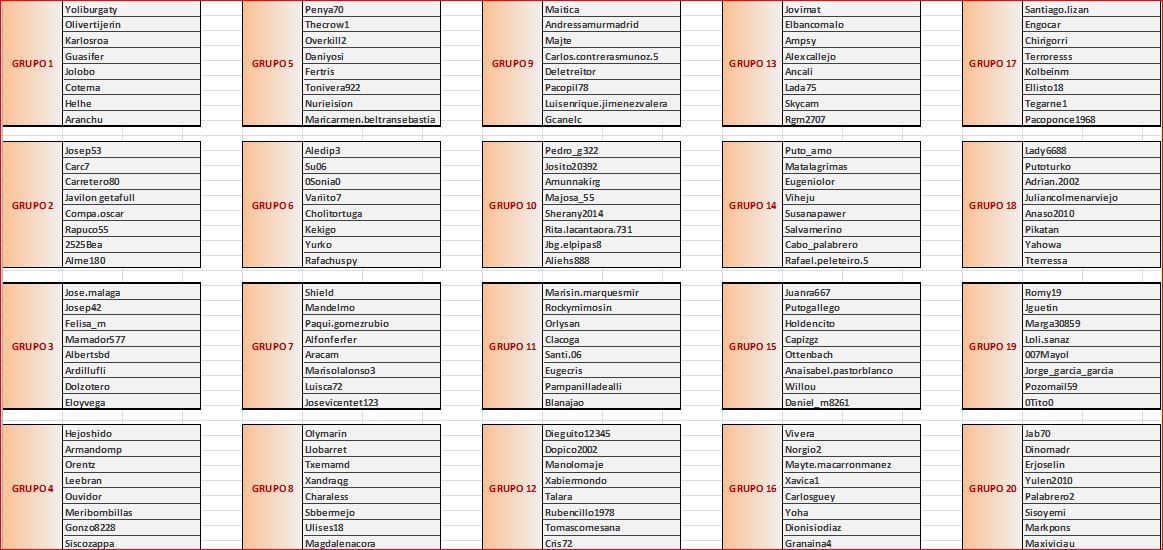 ¡¡¡ Hazlo en la sub-página habilitada para el grupo en el que estés encuadrado !!! Desde 01/01/2014, las reglas de todos los torneos figuran en una pestaña general, no olvides leerlas.