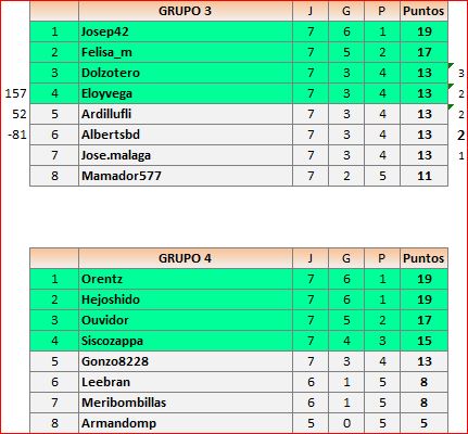 Lista de los jugadores de cada grupo ordenados por la media de puntos del ranking.