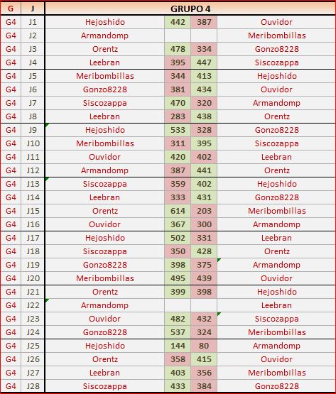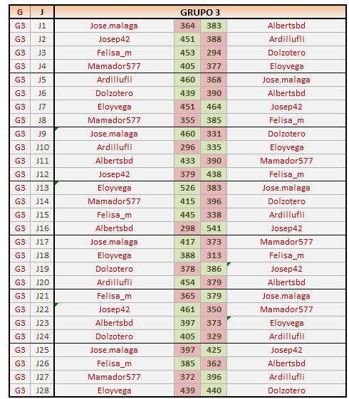 Deja un comentarioEn está página se irán publicando los resultados de las diferentes partidas, siendo ambos jugadores los responsables de subirlos, o comprobando que ya hayan sido subidos, insertando un COMENTARIO en la parte inferior de la pantalla (opción «Deja tu comentario«), indicando el nombre de los dos jugadores y los puntos obtenidos en la partida.