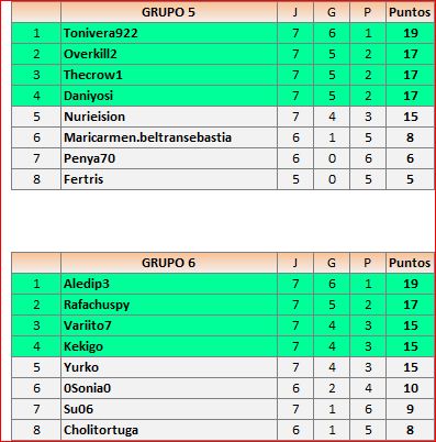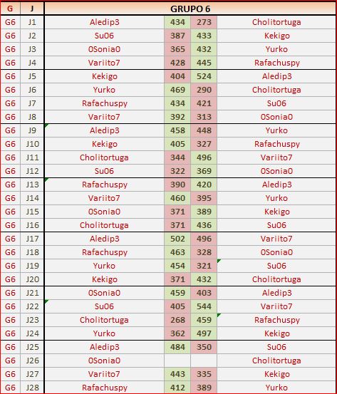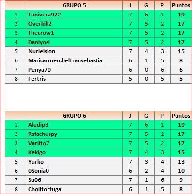 Lista de los jugadores de cada grupo ordenados por la media de puntos del ranking.