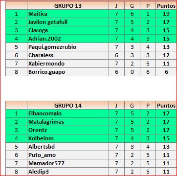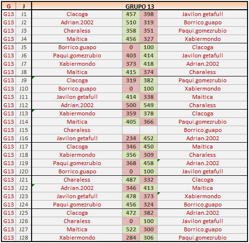 Deja un comentarioEn está página se irán publicando los resultados de las diferentes partidas, siendo ambos jugadores los responsables de subirlos, o comprobando que ya hayan sido subidos, insertando un COMENTARIO en la parte inferior de la pantalla (opción «Deja tu comentario«), indicando el nombre de los dos jugadores y los puntos obtenidos en la partida.