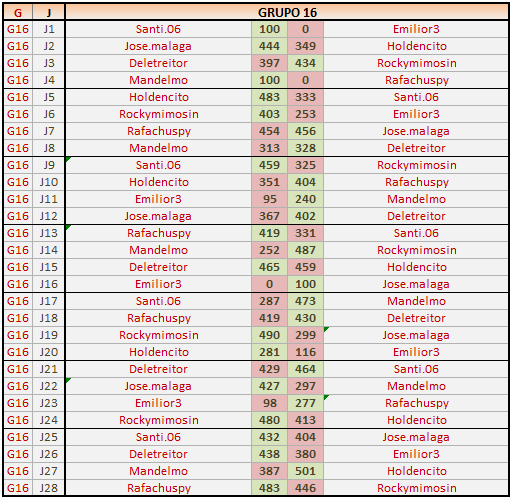 Deja un comentarioEn está página se irán publicando los resultados de las diferentes partidas, siendo ambos jugadores los responsables de subirlos, o comprobando que ya hayan sido subidos, insertando un COMENTARIO en la parte inferior de la pantalla (opción «Deja tu comentario«), indicando el nombre de los dos jugadores y los puntos obtenidos en la partida.