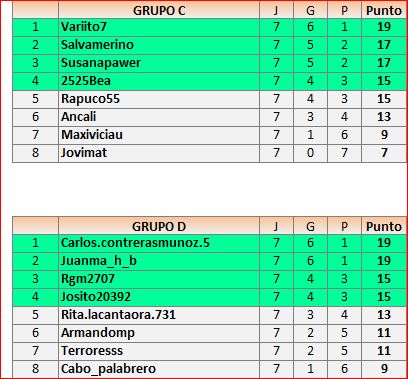 Deja un comentarioEn está página se irán publicando los resultados de las diferentes partidas, siendo ambos jugadores los responsables de subirlos, o comprobando que ya hayan sido subidos, insertando un COMENTARIO en la parte inferior de la pantalla (opción «Deja tu comentario«), indicando el nombre de los dos jugadores y los puntos obtenidos en la partida.
