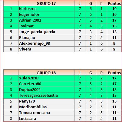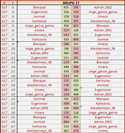 Deja un comentarioEn está página se irán publicando los resultados de las diferentes partidas, siendo ambos jugadores los responsables de subirlos, o comprobando que ya hayan sido subidos, insertando un COMENTARIO en la parte inferior de la pantalla (opción «Deja tu comentario«), indicando el nombre de los dos jugadores y los puntos obtenidos en la partida.