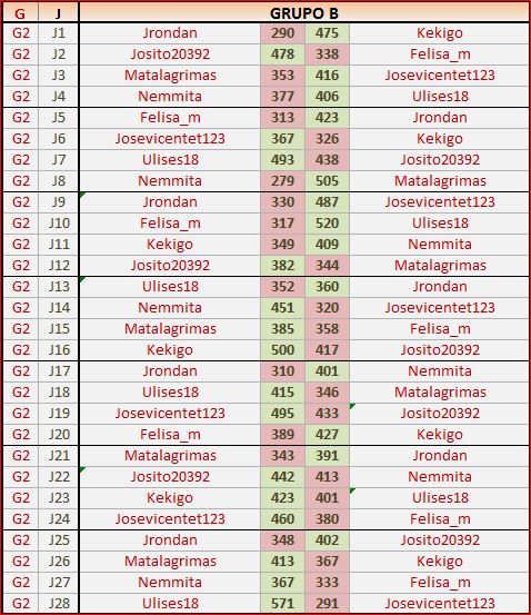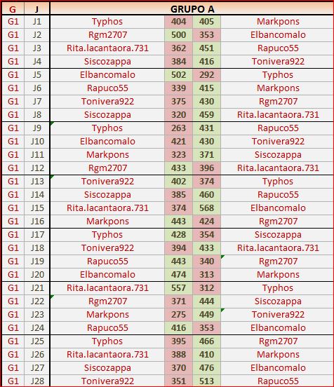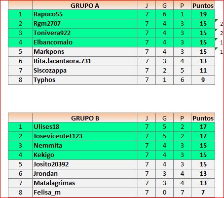 Deja un comentarioEn está página se irán publicando los resultados de las diferentes partidas, siendo ambos jugadores los responsables de subirlos, o comprobando que ya hayan sido subidos, insertando un COMENTARIO en la parte inferior de la pantalla (opción «Deja tu comentario«), indicando el nombre de los dos jugadores y los puntos obtenidos en la partida.