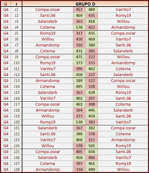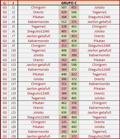 Deja un comentarioEn está página se irán publicando los resultados de las diferentes partidas, siendo ambos jugadores los responsables de subirlos, o comprobando que ya hayan sido subidos, insertando un COMENTARIO en la parte inferior de la pantalla (opción «Deja tu comentario«), indicando el nombre de los dos jugadores y los puntos obtenidos en la partida.