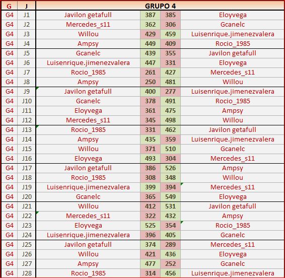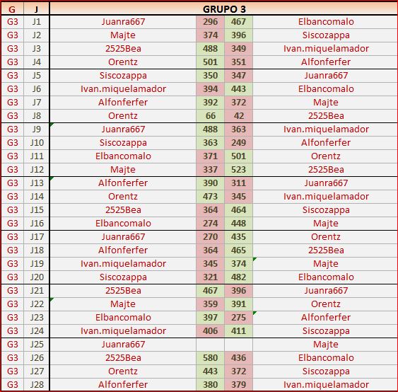 Deja un comentarioEn está página se irán publicando los resultados de las diferentes partidas, siendo ambos jugadores los responsables de subirlos, o comprobando que ya hayan sido subidos, insertando un COMENTARIO en la parte inferior de la pantalla (opción «Deja tu comentario«), indicando el nombre de los dos jugadores y los puntos obtenidos en la partida.