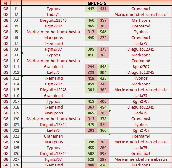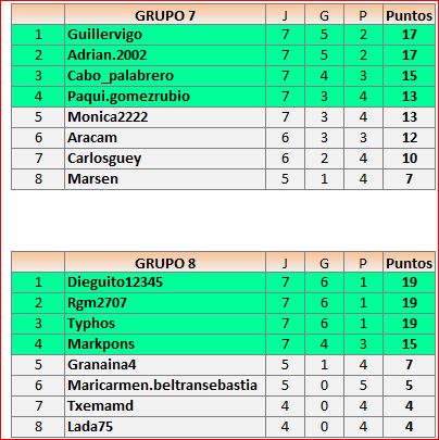 Deja un comentarioEn está página se irán publicando los resultados de las diferentes partidas, siendo ambos jugadores los responsables de subirlos, o comprobando que ya hayan sido subidos, insertando un COMENTARIO en la parte inferior de la pantalla (opción «Deja tu comentario«), indicando el nombre de los dos jugadores y los puntos obtenidos en la partida.
