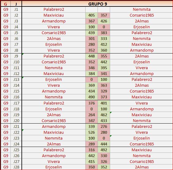 Deja un comentarioEn está página se irán publicando los resultados de las diferentes partidas, siendo ambos jugadores los responsables de subirlos, o comprobando que ya hayan sido subidos, insertando un COMENTARIO en la parte inferior de la pantalla (opción «Deja tu comentario«), indicando el nombre de los dos jugadores y los puntos obtenidos en la partida.