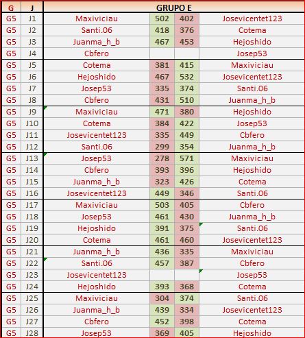 Deja un comentarioEn está página se irán publicando los resultados de las diferentes partidas, siendo ambos jugadores los responsables de subirlos, o comprobando que ya hayan sido subidos, insertando un COMENTARIO en la parte inferior de la pantalla (opción «Deja tu comentario«), indicando el nombre de los dos jugadores y los puntos obtenidos en la partida.