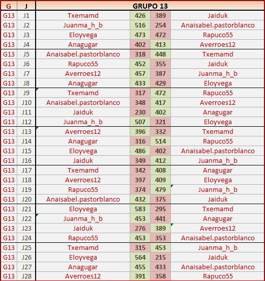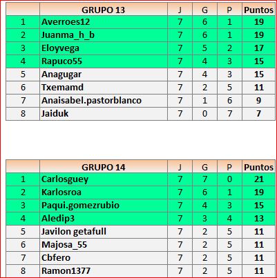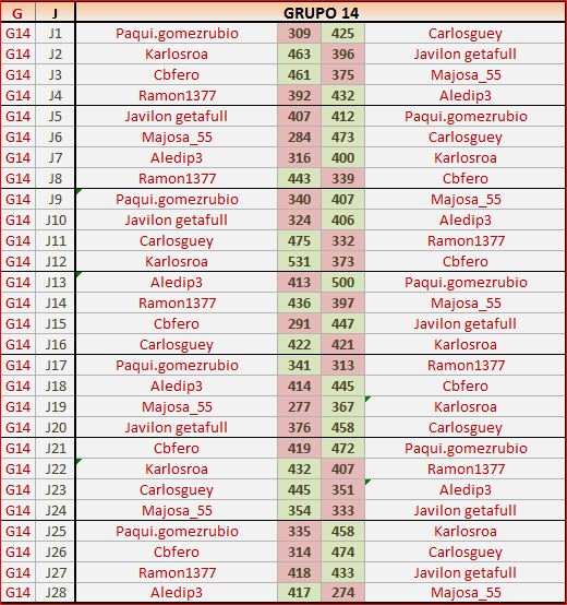Deja un comentarioEn está página se irán publicando los resultados de las diferentes partidas, siendo ambos jugadores los responsables de subirlos, o comprobando que ya hayan sido subidos, insertando un COMENTARIO en la parte inferior de la pantalla (opción «Deja tu comentario«), indicando el nombre de los dos jugadores y los puntos obtenidos en la partida.
