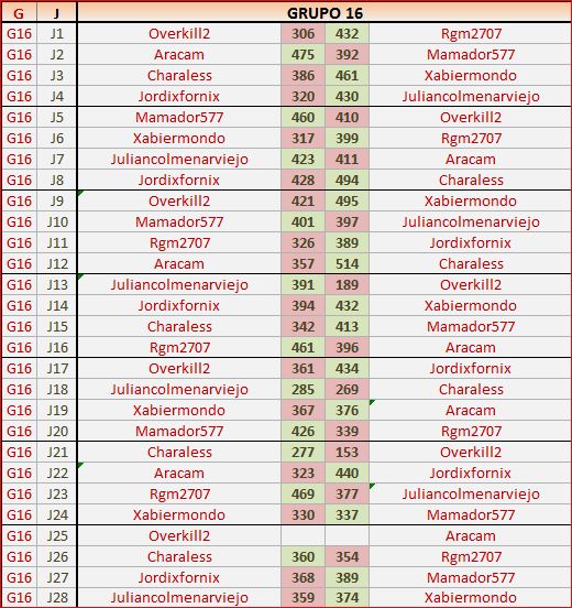 Deja un comentarioEn está página se irán publicando los resultados de las diferentes partidas, siendo ambos jugadores los responsables de subirlos, o comprobando que ya hayan sido subidos, insertando un COMENTARIO en la parte inferior de la pantalla (opción «Deja tu comentario«), indicando el nombre de los dos jugadores y los puntos obtenidos en la partida.