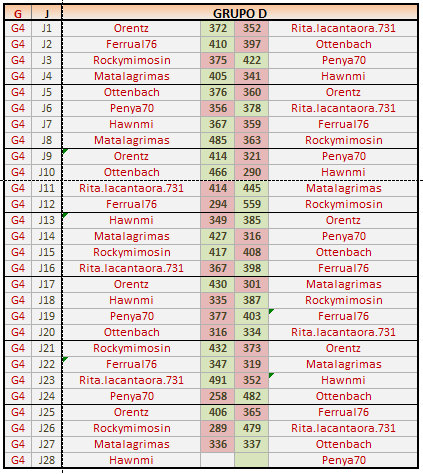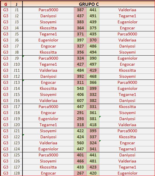 Deja un comentarioEn está página se irán publicando los resultados de las diferentes partidas, siendo ambos jugadores los responsables de subirlos, o comprobando que ya hayan sido subidos, insertando un COMENTARIO en la parte inferior de la pantalla (opción «Deja tu comentario«), indicando el nombre de los dos jugadores y los puntos obtenidos en la partida.