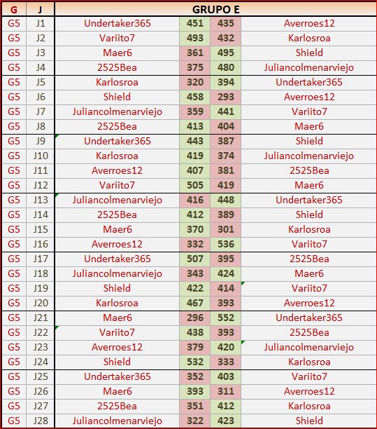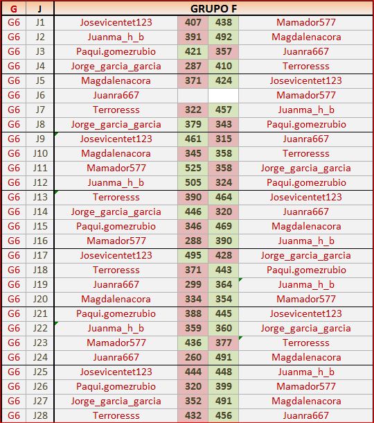 Deja un comentarioEn está página se irán publicando los resultados de las diferentes partidas, siendo ambos jugadores los responsables de subirlos, o comprobando que ya hayan sido subidos, insertando un COMENTARIO en la parte inferior de la pantalla (opción «Deja tu comentario«), indicando el nombre de los dos jugadores y los puntos obtenidos en la partida.
