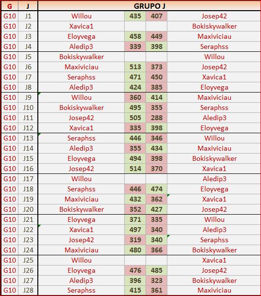 Deja un comentarioEn está página se irán publicando los resultados de las diferentes partidas, siendo ambos jugadores los responsables de subirlos, o comprobando que ya hayan sido subidos, insertando un COMENTARIO en la parte inferior de la pantalla (opción «Deja tu comentario«), indicando el nombre de los dos jugadores y los puntos obtenidos en la partida.