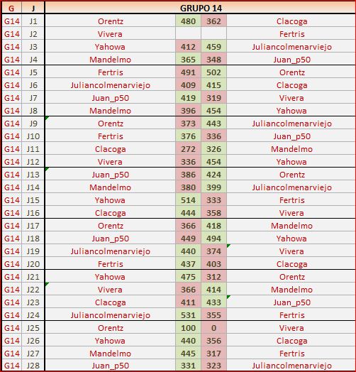 Deja un comentarioEn está página se irán publicando los resultados de las diferentes partidas, siendo ambos jugadores los responsables de subirlos, o comprobando que ya hayan sido subidos, insertando un COMENTARIO en la parte inferior de la pantalla (opción «Deja tu comentario«), indicando el nombre de los dos jugadores y los puntos obtenidos en la partida.
