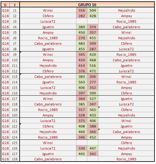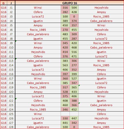 Deja un comentarioEn está página se irán publicando los resultados de las diferentes partidas, siendo ambos jugadores los responsables de subirlos, o comprobando que ya hayan sido subidos, insertando un COMENTARIO en la parte inferior de la pantalla (opción «Deja tu comentario«), indicando el nombre de los dos jugadores y los puntos obtenidos en la partida.