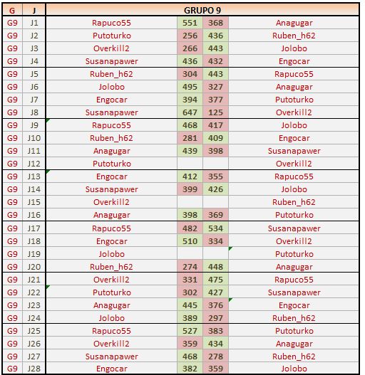 Deja un comentarioEn está página se irán publicando los resultados de las diferentes partidas, siendo ambos jugadores los responsables de subirlos, o comprobando que ya hayan sido subidos, insertando un COMENTARIO en la parte inferior de la pantalla (opción «Deja tu comentario«), indicando el nombre de los dos jugadores y los puntos obtenidos en la partida.