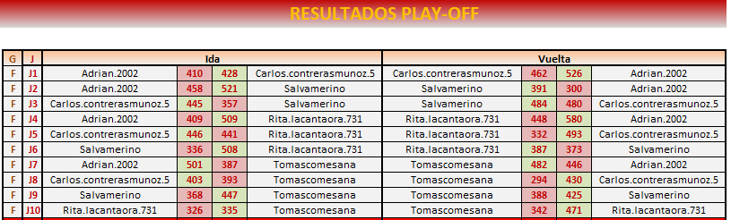 Enhorabuena Carlos, segundo consecutivo, eres un monstruo. Felicidades a los finalistas, no hemos podido luchar, ni igualar a Carlos pero por lo menos, yo he disfrutado, y mucho en mi primer playoff de torneo individual. He tardado mucho en llegar hasta aquí, y no ha sido nada fácil. Todos sabemos lo complicado que es llegar hasta aquí. Felicidades a la organización por el trabajo que hacéis día a día, sois muy grandes. Enhorabuena a rita y salva por el podio y a Tomás por el gran playoff. Un saludo a todos.