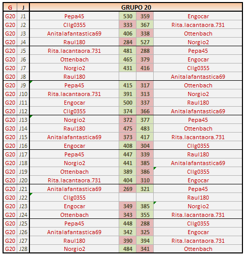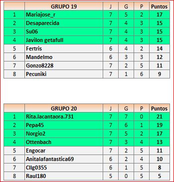 Deja un comentarioEn está página se irán publicando los resultados de las diferentes partidas, siendo ambos jugadores los responsables de subirlos, o comprobando que ya hayan sido subidos, insertando un COMENTARIO en la parte inferior de la pantalla (opción «Deja tu comentario«), indicando el nombre de los dos jugadores y los puntos obtenidos en la partida.
