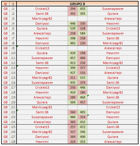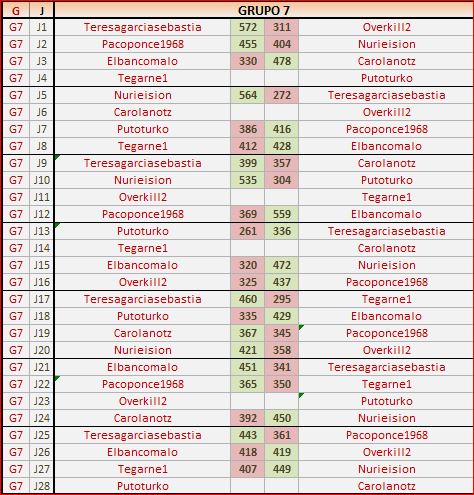 Deja un comentarioEn está página se irán publicando los resultados de las diferentes partidas, siendo ambos jugadores los responsables de subirlos, o comprobando que ya hayan sido subidos, insertando un COMENTARIO en la parte inferior de la pantalla (opción «Deja tu comentario«), indicando el nombre de los dos jugadores y los puntos obtenidos en la partida.