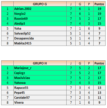 Deja un comentarioEn está página se irán publicando los resultados de las diferentes partidas, siendo ambos jugadores los responsables de subirlos, o comprobando que ya hayan sido subidos, insertando un COMENTARIO en la parte inferior de la pantalla (opción «Deja tu comentario«), indicando el nombre de los dos jugadores y los puntos obtenidos en la partida.
