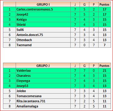 Deja un comentarioEn está página se irán publicando los resultados de las diferentes partidas, siendo ambos jugadores los responsables de subirlos, o comprobando que ya hayan sido subidos, insertando un COMENTARIO en la parte inferior de la pantalla (opción «Deja tu comentario«), indicando el nombre de los dos jugadores y los puntos obtenidos en la partida.