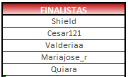 Y por supuesto, no voy a olvidarme de los otros finalistas. Es cada vez más difícil llegar a un play off, así que para mí los cinco sois ganadores. No tengo el placer de conocer a César, seguro que en breve disfrutaré de su estupendo juego como ya me pasa con María José y con Desi. Sois grandes, chicos.