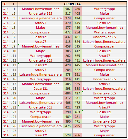 Deja un comentarioEn está página se irán publicando los resultados de las diferentes partidas, siendo ambos jugadores los responsables de subirlos, o comprobando que ya hayan sido subidos, insertando un COMENTARIO en la parte inferior de la pantalla (opción «Deja tu comentario«), indicando el nombre de los dos jugadores y los puntos obtenidos en la partida.