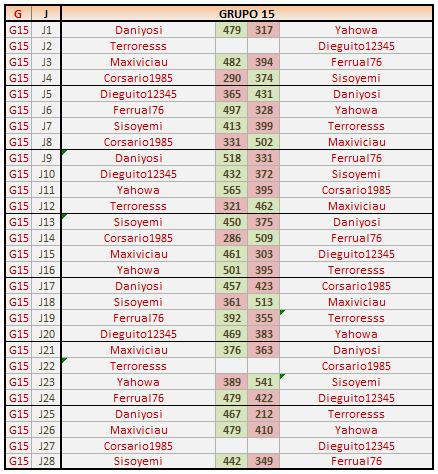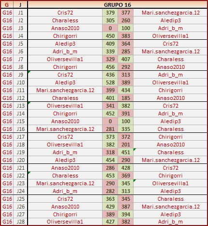 Deja un comentarioEn está página se irán publicando los resultados de las diferentes partidas, siendo ambos jugadores los responsables de subirlos, o comprobando que ya hayan sido subidos, insertando un COMENTARIO en la parte inferior de la pantalla (opción «Deja tu comentario«), indicando el nombre de los dos jugadores y los puntos obtenidos en la partida.